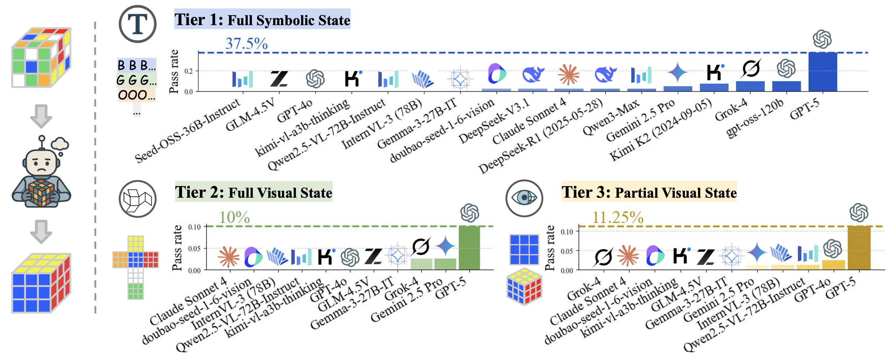 We evaluated leading LLMs across all four observation modalities on both short- and long-horizon tasks. The results reveal several critical limitations: