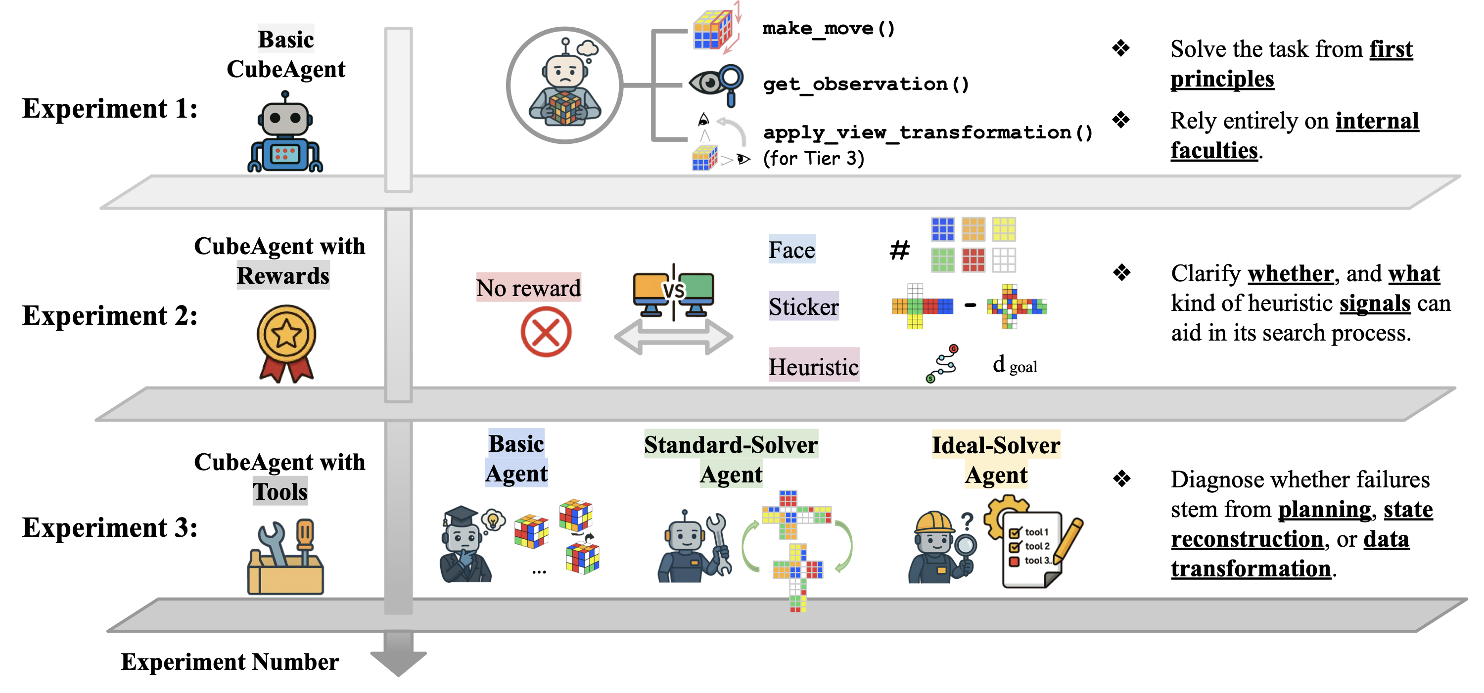 We tested whether dense reward signals (face, sticker, and heuristic) can guide agent search: